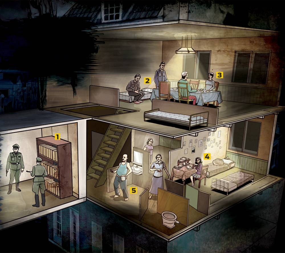 Foi em Julho de 1942 que Margot, a irmã mais velha, recebeu uma carta do Escritório Central de Emigração Judaica, que ordenava que ela se apresentasse imediatamente num gueto – ou “campo de trabalho”. Otto Frank providenciou um esconderijo atrás das instalações da Opekta, na Prinsengracht, numa rua junto aos canais, onde alguns dos seus amigos mais leais os ajudariam a se manterem escondidos por quase dois anos – entre eles Miep Gies, que os protegeu e foi a guardiã do diário de Anne até ao fim da guerra.