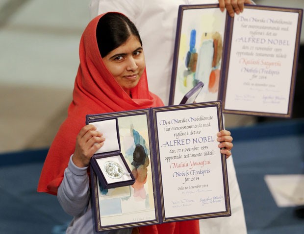 Em 2014, foi anunciado pelo Comitê do Nobel que o prêmio desse ano pertenceria a Malala, partilhado com o indiano Kailash Satyarthi, pela sua coragem na “luta contra a supressão das crianças e jovens e pelo direito de todos à educação”, tornando-a na pessoa mais jovem de sempre a ganhar um Prêmio Nobel.