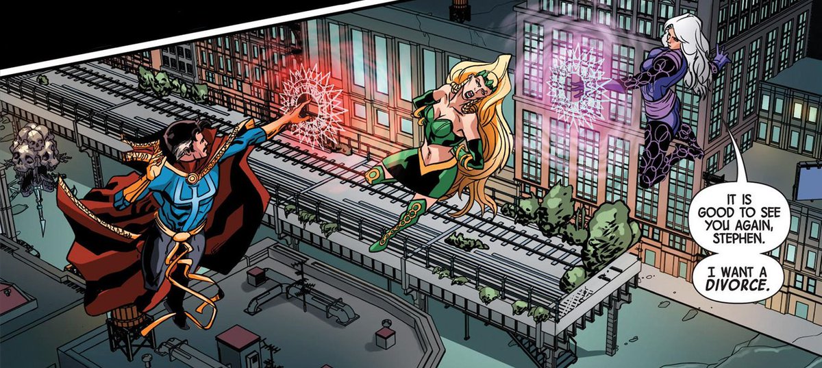 E também foi quando ela pediu divórcio, depois de descobrir que Strange tinha traído ela.