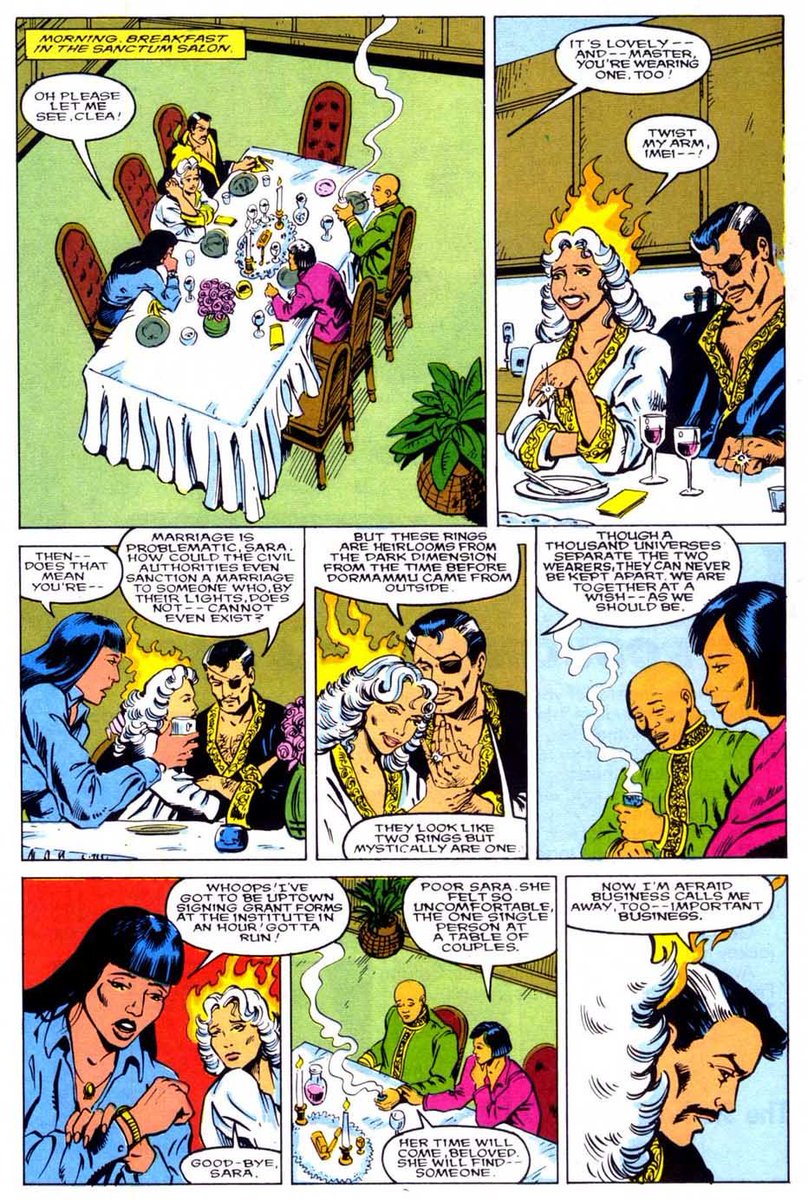 Depois de um tempo que Clea e Strange lutavam lado a lado, eles se casaram e trocaram votos na Dark Dimension (os votos tornam os dois apenas “um”, fazendo com que eles possam se comunicar mesmo em dimensões separadas).