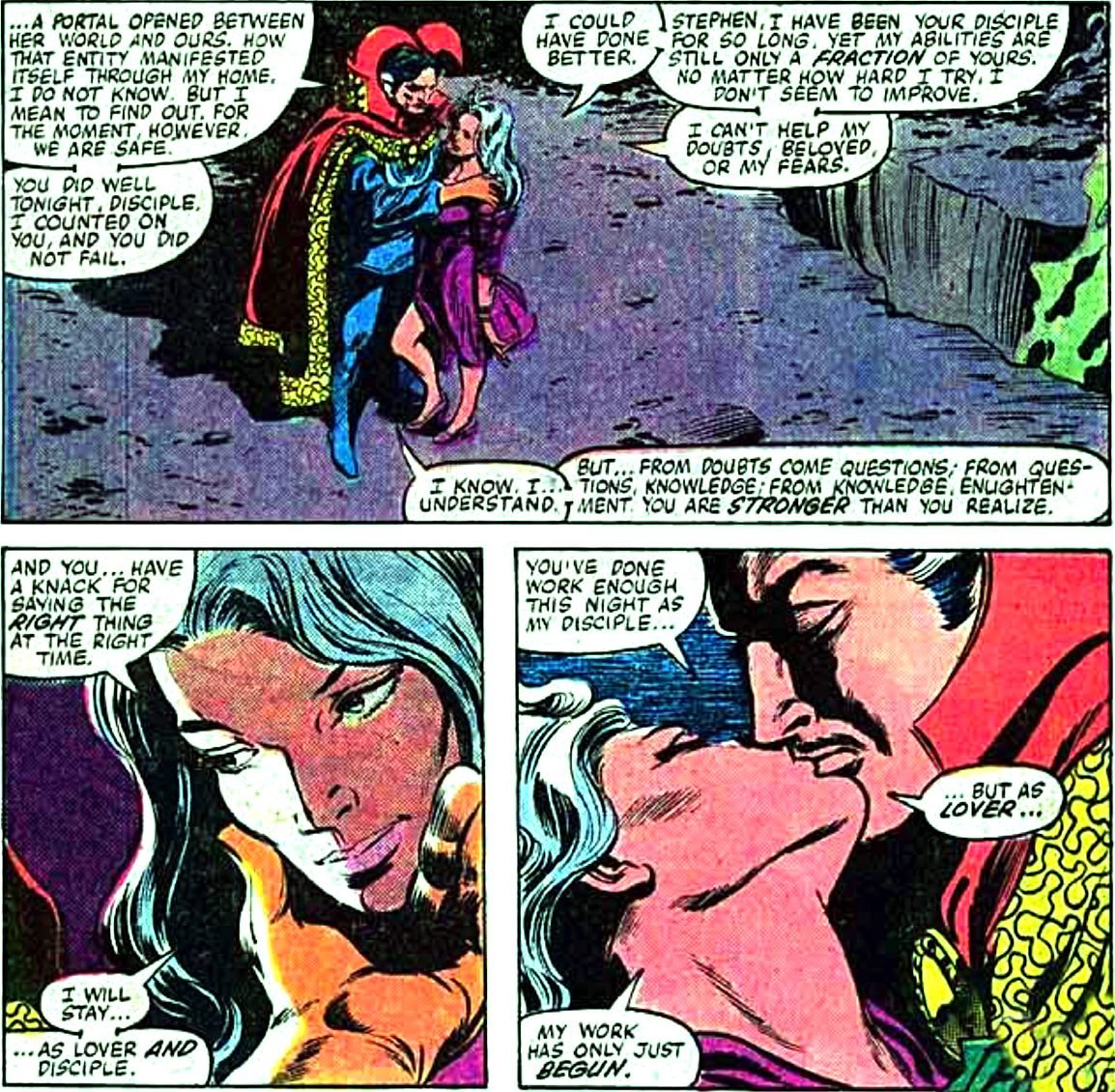 Clea se tornou uma aliada de Strange na Dark Dimension e acabou se tornando alvo de seus inimigos, mas Strange sempre lutava para salvá-la, até que ele decidiu levá-la para a Terra e viver no Sanctum (onde ele a tornou sua discípula e amada)