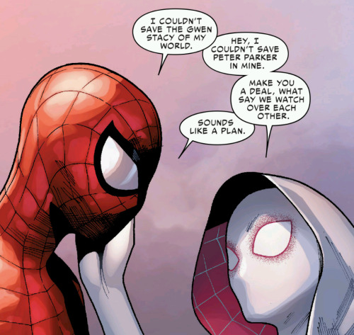 A Gwen-Aranha é a mesma Gwen Stacy, porém em outra dimensão. Em 2015 Gwen Stacy apareceu pela primeira vez no Aranhaverso (Edge Of Spider-Verse #2)