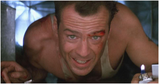 A segunda referência que chamou a atenção- proposital ou não- foi a cena onde Erica- irmã do Lucas- entra no duto de ar para poder liberar o acesso do seu grupo no depósito da organização russa. Essa cena lembrou muito alguns minutos do filme “Duro de Matar” (1988) onde o personagem de Bruce Willis- John McLane também passa pela mesma situação, mas com finalidades diferentes. O que mais assemelha a cena de Stranger Things com a do filme é a posição da câmera, centralizada no rosto dos atores enquanto escorregam pela passagem estreita.