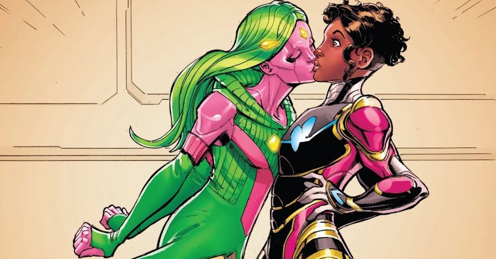 Viv é canonicamente lésbica e gosta da Riri Willians, mas não é mostrado se Visão sabe disso.