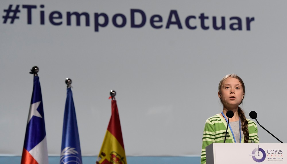 Em sua última aparição, dia 11 de dezembro de 2019, na COP25, Greta acusou líderes políticos e empresários “de preferirem cuidar de suas próprias imagens a tomar medidas agressivas na luta contra as mudanças climáticas. Ela apontou para as ambiciosas metas de redução de emissões chamando-as de “enganação” e disse que “nada está sendo feito” para evitar uma catástrofe climática” (G1).