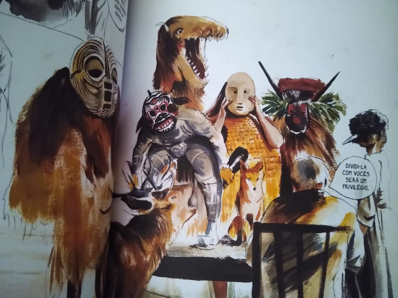 Em alguns momentos a história causa um estranhamento, tornando-se difícil de entender, o que nos leva a um dos pontos mais importantes do livro, as ilustrações. Os desenhos impecáveis por diversas vezes se sobrepõem ao texto, transmitindo a ideia do autor. No entanto, o texto breve conversa com as imagens, compondo toda a narrativa de uma forma que leva o leitor para dentro do universo.