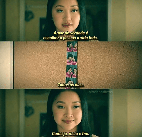 Algo que acho digno de comentar, e que todos os personagens secundários recomendaram para Lara Jean, é que: NUNCA deixe seu futuro e sonhos de lado por causa de outra pessoa, nem que ela pareça ser o amor da sua vida.