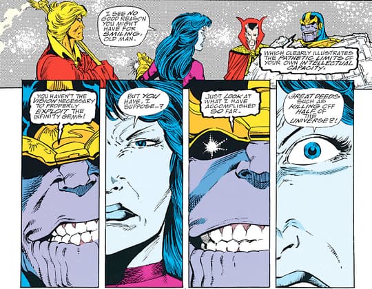 Uma vez que Thanos adquiriu todas as Joias do Infinito junto com a Manopla, ele demonstrou seu controle total sobre a realidade fazendo Nebula aparecer como um zumbi para impressionar a Morte. Pretendido como uma homenagem a sua senhora, Nebulosa acabou por ser Thanos? queda quando seu ódio pelo Titã Louco a levou a roubar a Manopla de Thanos? mão.
