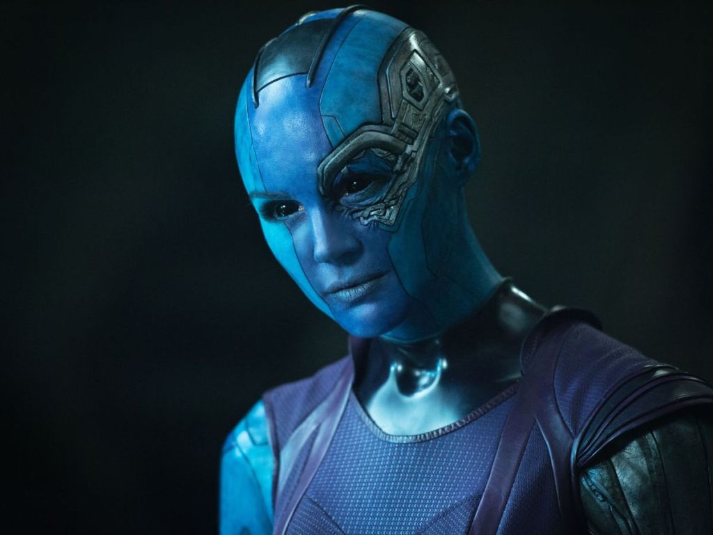 Interpretada por Karen Gillan, ela é retratada como uma guerreira alienígena de pele azul que é filha adotiva de Thanos, que matou sua família de sangue antes de criá-la, e irmã adotiva de Gamora, com quem ela passou a compartilhar uma amarga rivalidade. Embora ela seja apresentada pela primeira vez como a antagonista secundária de Guardiões da Galáxia (2014), os filmes subsequentes a mostram se tornando uma anti-heroína e, eventualmente, uma protagonista, que se junta a sua irmã como parte dos Guardiões da Galáxia e se torna um membro dos Vingadores. e depois oficialmente dos Guardiões da Galáxia.