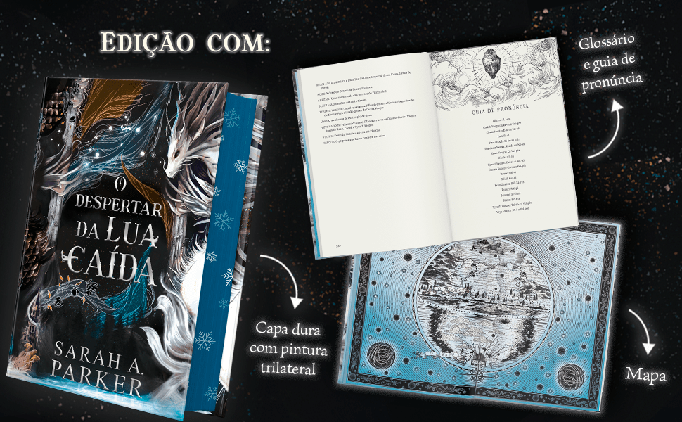 O Despertar da Lua Caída é o primeiro volume da nova série de Alta Fantasia de Sarah A. Parker, que contém dragões, luas que caem e um romance arrebatador que transcende memórias apagadas e embates políticos.